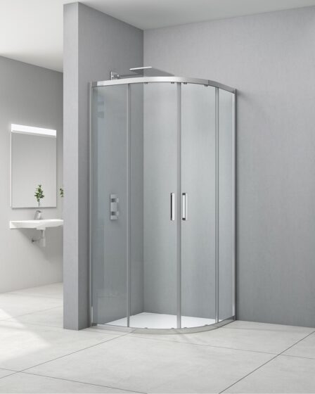 Idealaqua tuš kabina polukružna NDF, 90 cm, klizna, krom\prozirno