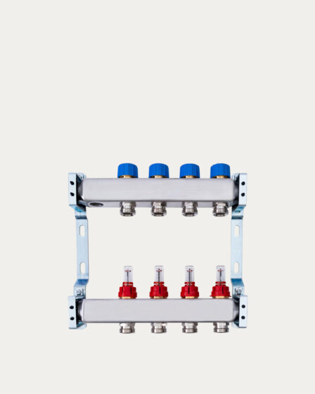 Comfort razdjeljnik za podno grijanje s topmetrima, 10 kruga omogućuje precizno upravljanje višekružnim sustavima podnog grijanja s tri kruga. Zahvaljujući integriranim topmetrima, razdjeljnik pruža točno očitanje protoka u svakom krugu, osiguravajući ravnomjernu raspodjelu topline i visoku energetsku učinkovitost. Robusna i kompaktna konstrukcija čini ga idealnim za stambene i poslovne prostore, uz jednostavnu montažu i održavanje.