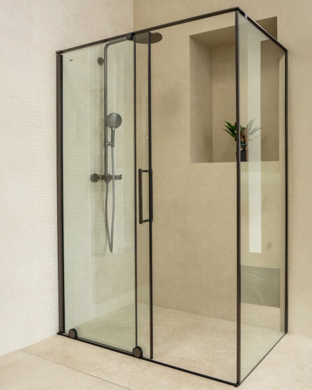 IdealaquaIdealaqua tuš vrata BUP, 120 cm, klizna, brushed black/prozirno